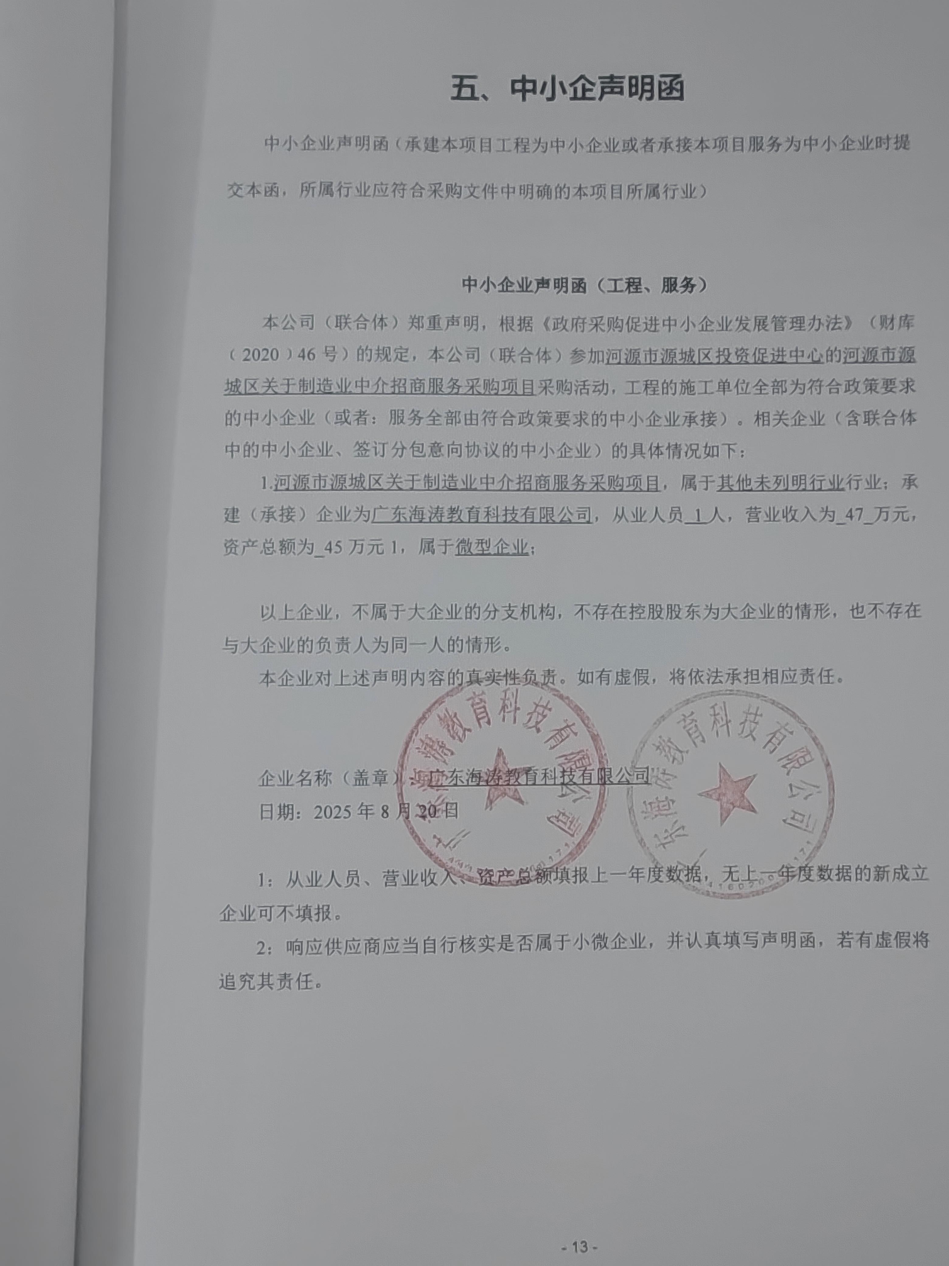 二、項目名稱:河源市源城區(qū)關于制造業(yè)中介招商服務采購項目